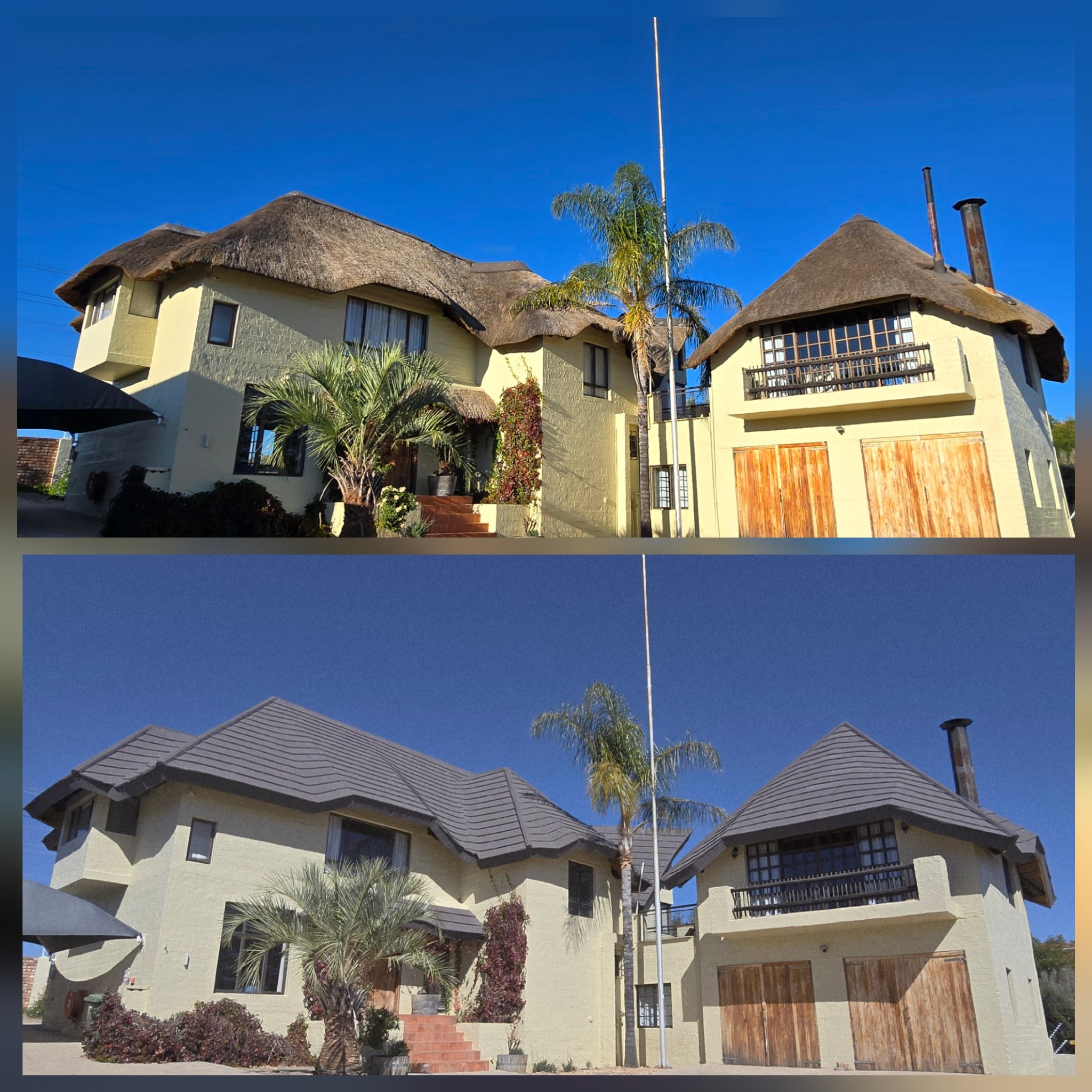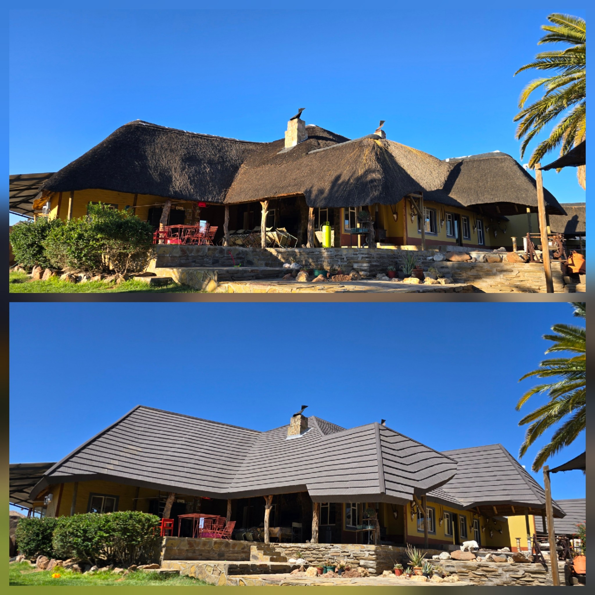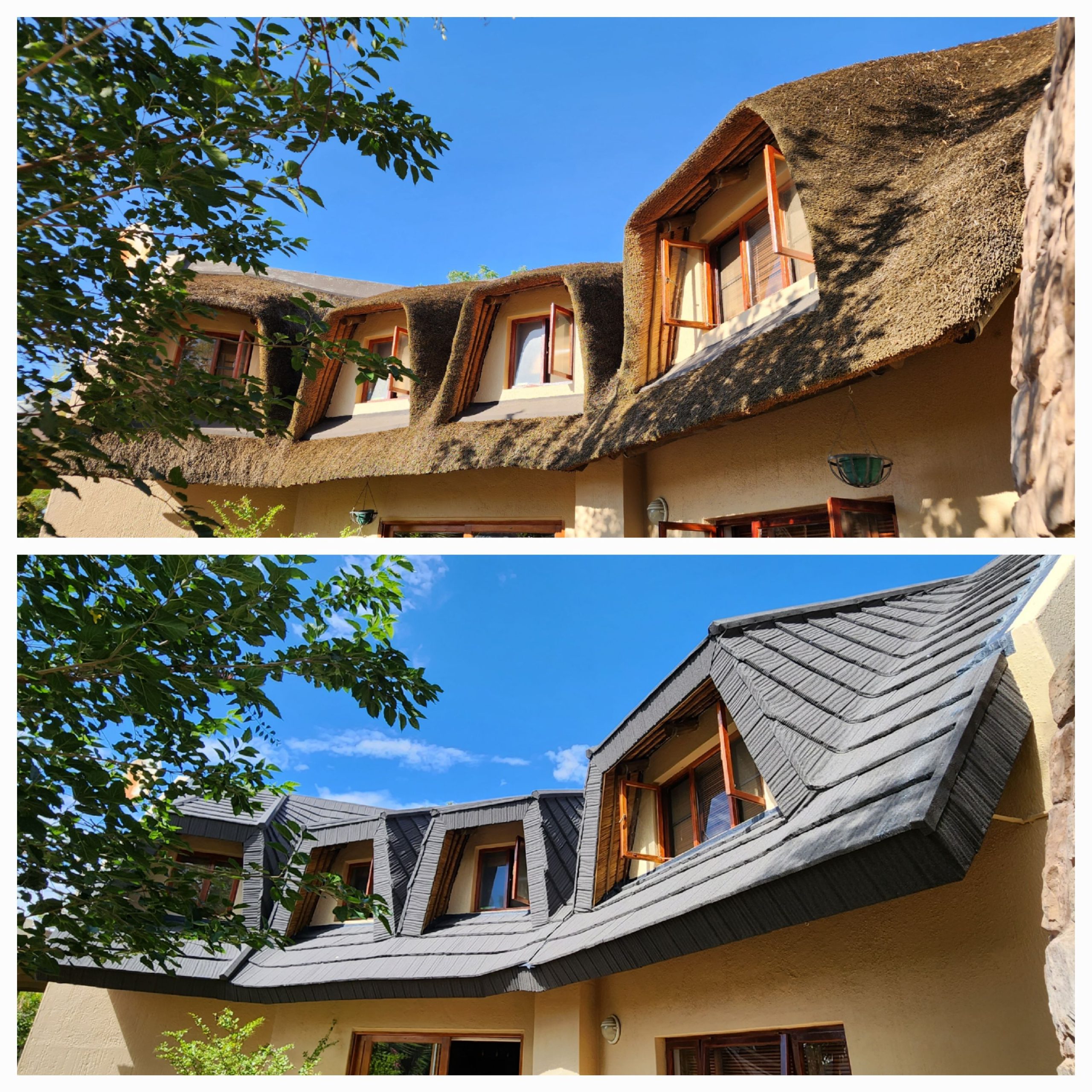 We are so happy to have chosen your expertise with the cladding on our thatch roof with an esthetic tile system. Your service was fantastic, work done in an excellent time limit. Your workers were very neat, well behaved and left their workspace spotless. Would recommend your company any time.